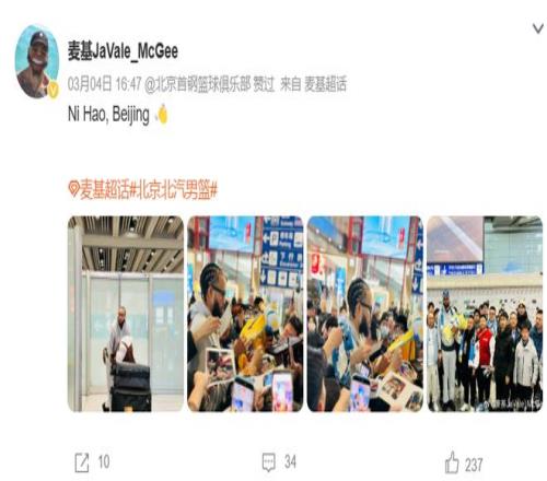本赛季第二阶段开打前,北京队压哨为麦基完成了注册,意味着即日起就能出战CBA,有望本周三主场对阵联盟垫底的四川队完成首秀。
